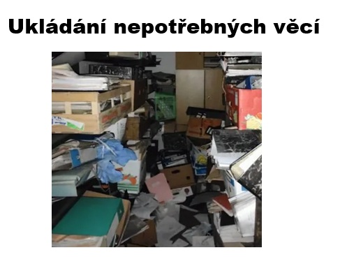 Jsou rodiny, kde nemají jednotný názor, zda věci uschovávat nebo vyhodit. Jeden tu věc schová, druhý ji tajně vyhodí. Lidé, kteří žijí v paneláku, nemohou nic skladovat, situace je nutí zbavovat se použitých věcí zcela automaticky.