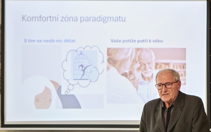 Máte misku meruněk s jednou zkaženou. Když ji neodstraníte, všechny ostatní se nakazí. A to se stává v našem organismu. Tím se snižuje imunita. A v 65 letech se vyskytují tyto buňky u každého člověka běžně. A nyní jde o to, jak se jich zbavit. Předpokládá se, že v roce 2050 bude na světě 1,6 miliardy 65letých lidí a to není schopna žádná pojišťovna zvládnout. Proto vedu tuto ´přednášku´, abych ukazoval cestu, jak můžeme tyto procesy a senescentní (zkažené) buňky eliminovat nebo zničit.